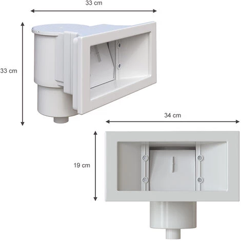 - Der Skimmer hat ein Gesamtmaß von 34 x 33 x 33 cm (BxHxT).