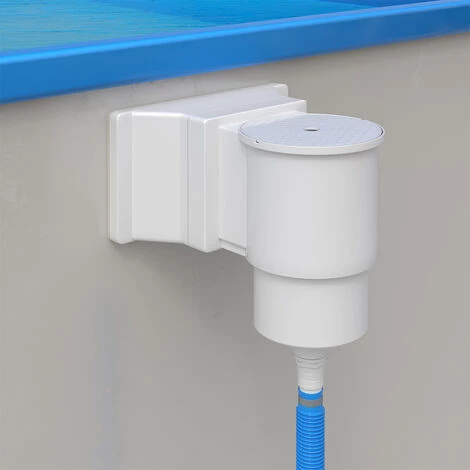 - Mittels der flexiblen Skimmerklappe mit Federstiften fließt nur sauber gefiltertes Wasser in den Swimming-Pool.