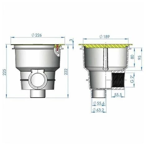 Hergestellt aus ABS mit Anti-UV-Behandlung, seitlichen 2-Zoll-Auslassanschlüssen und halbgelochtem Bodenauslass.
