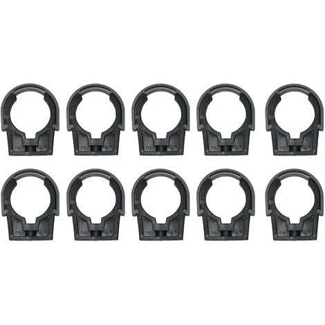 Sie erhalten zehn stabile PVC Rohrschellen.