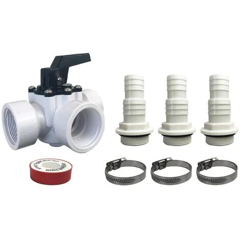 - Inkl. 3-Wege PVC Kugelhahn mit IG (schaltbar), 3 Schlauchadapter, 3 Schellen + Teflonband
