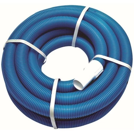 Sie erhalten einen hochwertigen, blauen Schwimmbadschlauch mit 38 mm Durchmesser und weißen Schlauchtüllen / Übergangsstücken an beiden Enden.