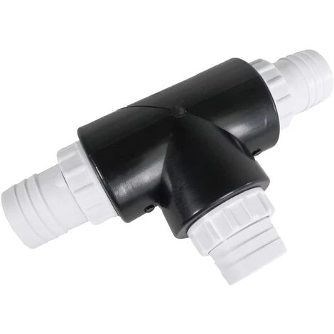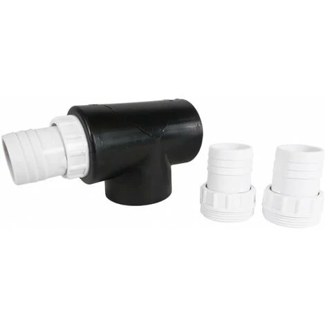 Schwarzer Schlauchverbinder T-Stück zum Verbinden von 38mm Schläuchen und Anschlüssen.